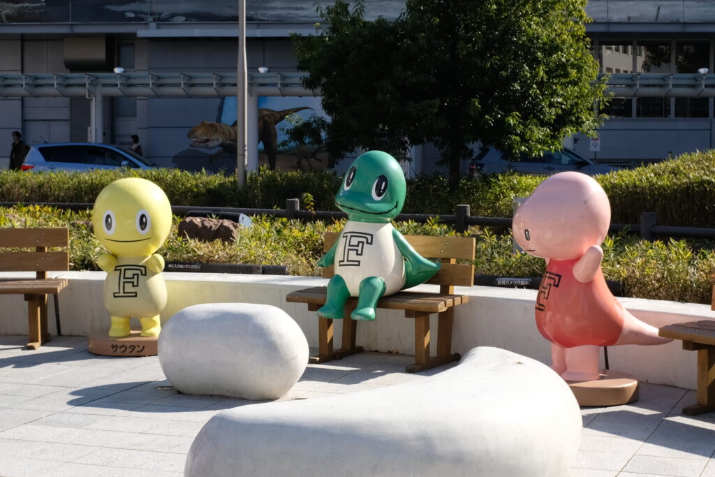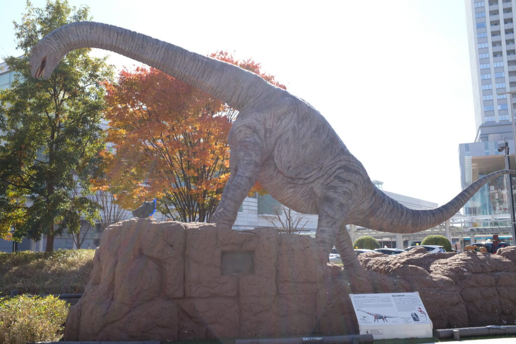 最後に、福井駅で迎えてくれた恐竜たちの写真を添えます。